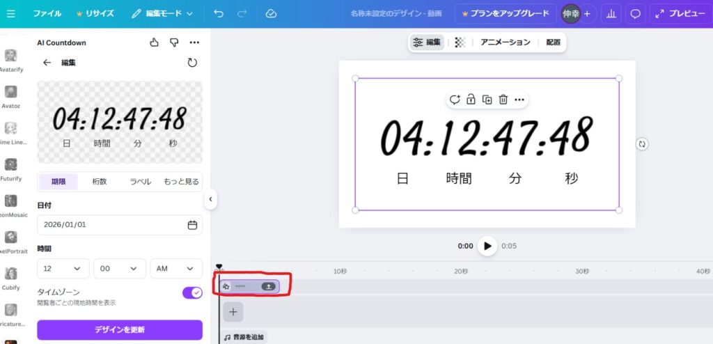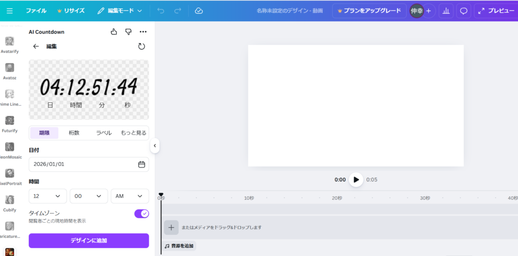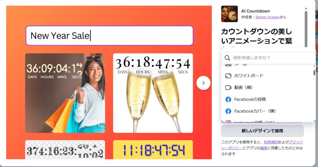 この動画はCanvaでのAIアプリを使ってカウントダウン動画を作っています。