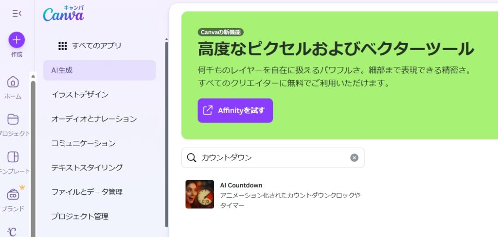 カウントダウンを生成するAIが表示されます。